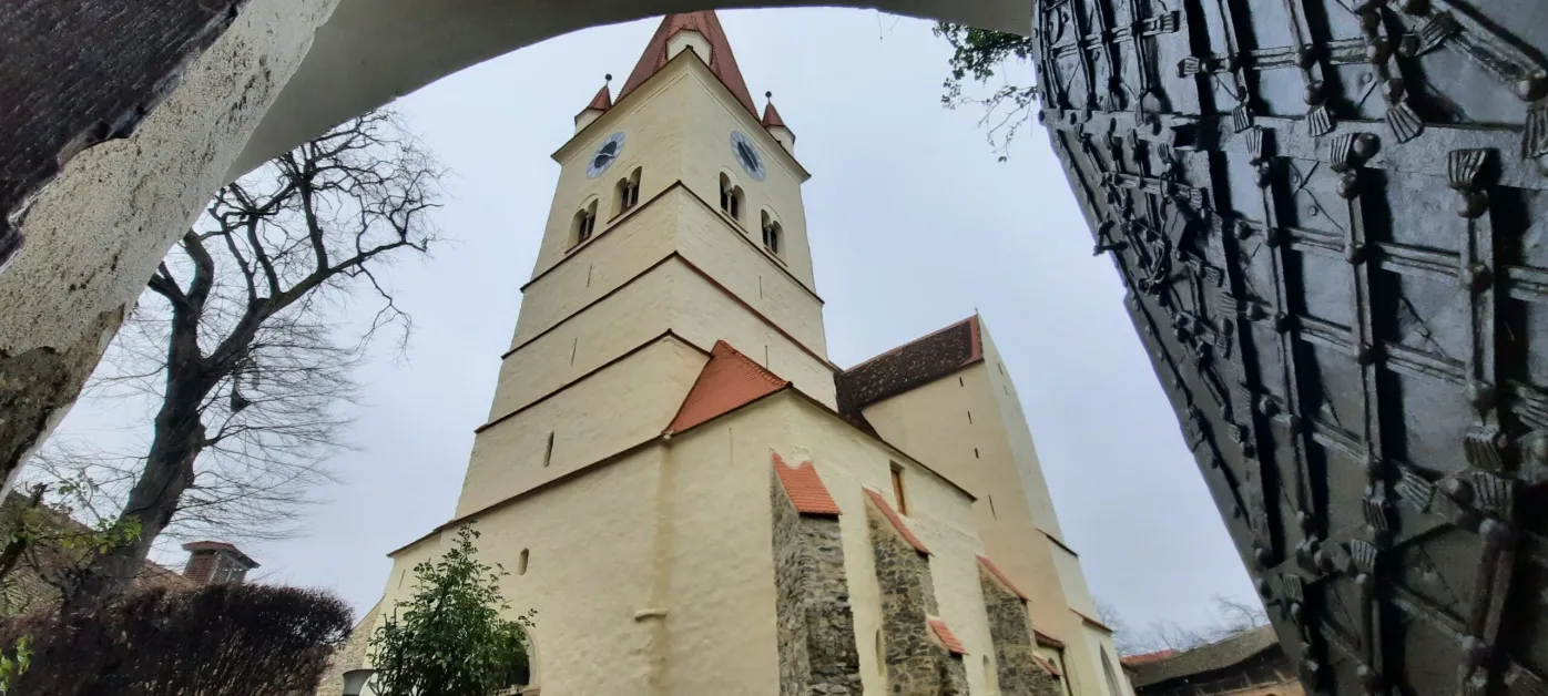 Obiectivul de patrimoniu național reabilitat este cu totul deosebit, datorită unor caracteristici care îi dau unicitate. Turnul cu Ceas, aproape la fel de celebru ca cel din Sighişoara, este printre primele turnuri cu ceas din Transilvania (şi din România), ridicat la 1425. Al doilea element este instalarea primului paratrăznet de la sud-est de Viena, în 1795, deoarece biserica, fiind amplasată la înălţime, a ars de nenumărate ori datorită fulgerelor şi banii de renovare nu mai ajungeau. Pornind de la superstiţia că unde fulgerul a lovit o dată nu va mai lovi încă o dată, o legendă locală spune că actualul paratrăznet a fost realizat dupa forma ultimului fulger, iar de atunci biserica nici nu a mai ars.
