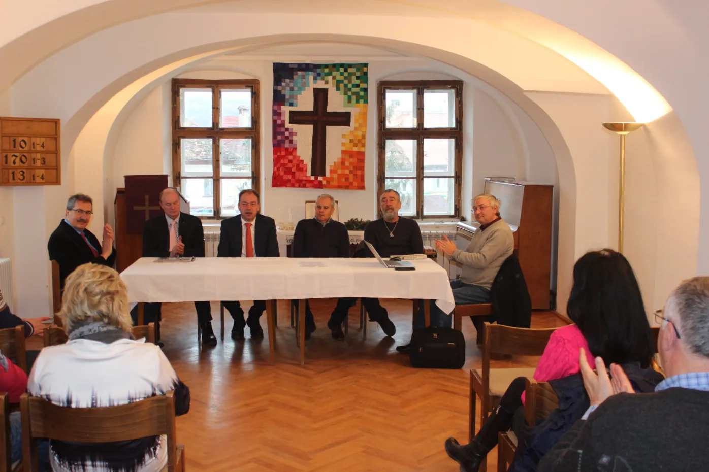 Preotul Kézdi László-Zoran, care păstorește comunitatea evanghelică din Cisnădie de mai bine un deceniu, a mulțumit rând pe rând tuturor celor care au pus suflet și au realizat acest proiect model la Cisnădie. Un gând aparte a mers către Asociația cisnădienilor din Germania. „Domnului Heinz Hermann nu ajunge să-i mulțumesc doar cu vorba, dar știe ce simt și știe cât datorăm Asociației cisnădienilor. Fără implicarea lor, nu doar financiar, fiindcă din costurile neeligibile parohia și asociația au preluat câte 50 la sută, cisnădienii emigrați ne-au ajutat enorm de mult. Domnul Hermann s-a implicat cu foarte mult suflet, a fost la nenumărate ședințe cu cei implicați, a fost prezent întotdeauna în fazele dificile.“, a amintit László-Zoran Kézdi, Prim-preot al Parohiei Evanghelice Cisnădie.