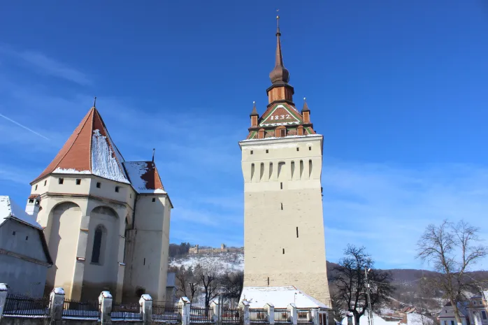 Turnul bisericii fortificate din Saschiz, monument de patrimoniu UNESCO, a fost reabilitat